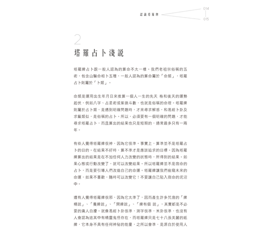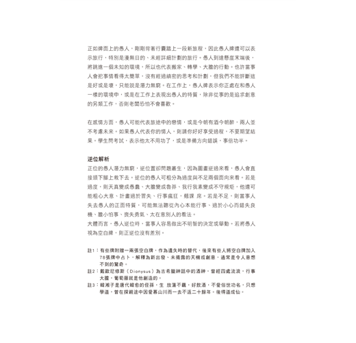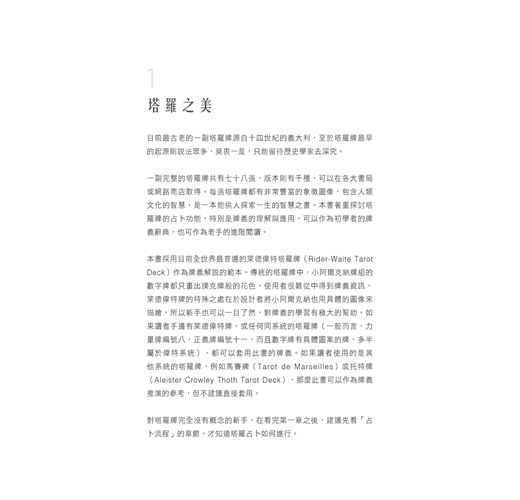 在學習塔羅牌的過程中,牌義是最令人困擾的,本書從正位的解釋出發,轉換角度看看逆位,讓你輕易上手,通盤掌握塔羅的點線面。 勤練葵花寶典三大心法,讓你舉一反三,快速掌握牌義要點,建立解牌信心。