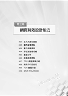 3.操作題型範例題目提供3大類30題,教您由淺入深的學習Dreamweaver CC最新之功能,包含「網頁結構設計能力」、「網頁版面規劃設計能力」及「網頁特效設計能力」,以實際作品範例透過設計功能剖析,提供讀者在解題過程中學習Dreamweaver CC最實用的技巧,提升網頁設計能力。