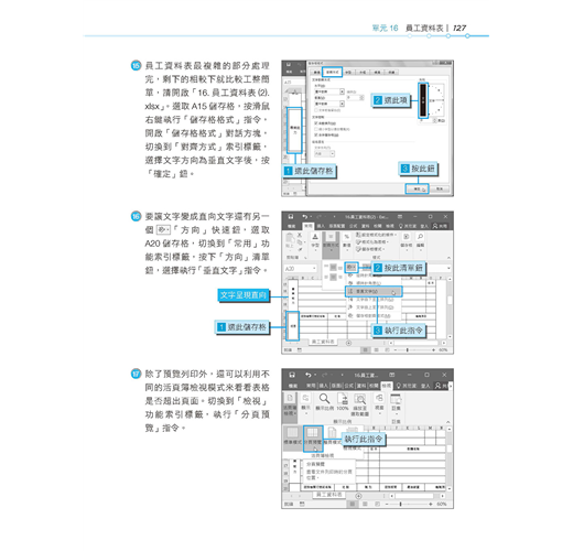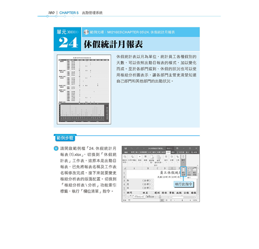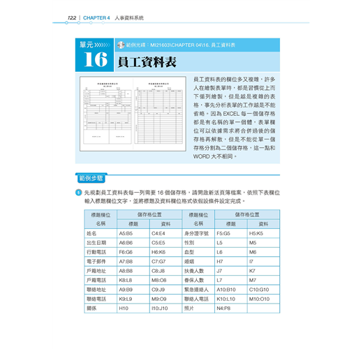 全書統整為8大行政系統包括:行政庶務、總務管理、零用金管理、人事資料、出勤管理、業績計算、人事考核與薪資管理,採用最新Excel 2016精選圖例製作出50組實用的辦公室表單,內容完全符合人資、行政、總務等商務必學的實用主題,有效提昇工作效率,展現你的職場價值。