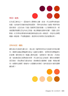 色彩表中提供了實用6類108色,詳細記載RGB值與CMYK值,可作為未來配色時的選擇參考。