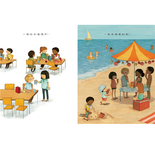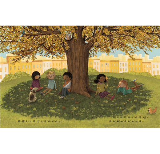 即使原文版只用Peace一字,但複數的詮釋並沒有造成歧義,反而更能深掘探究Peace這個字的核心,也撐起它的高度,讓大小讀者領略到「和平」的基礎和結構。這樣的內容,讓《最棒的禮物》成為非常特別的繪本,像是一本只有一個字詞卻非常浩瀚的辭典;這本「辭典」沒有冷靜的釋義,只有感性的邀請,邀請讀者更認識這個詞,也邀請讀者一起用行動使這個詞的涵義變得具體。