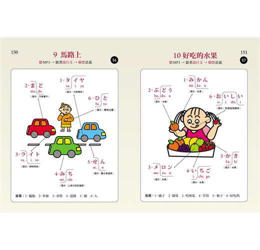 ‧「聽」MP3、或主動「讀」出假名,看圖聯想意義,達成深刻記憶單字的效果。