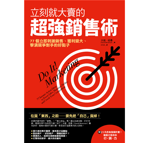 本書作者大衛.紐曼(David Newman)是美國著名行銷專家,也是超過四十家五○○大企業的御用行銷大師。他將透過馬上就能做的77個撇步,不但你找出好客戶、正確的客戶,有效擴大利潤,連簽名檔,都能有行銷效果!