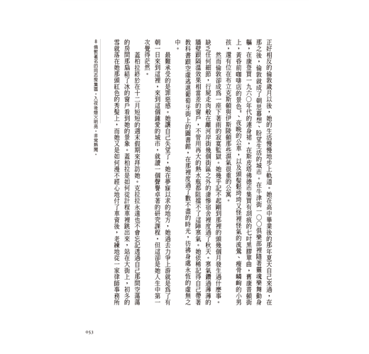 希利爾到底是如何穿越了她的防線,穿越她的探照燈跟警報器,穿越她的重重大鎖跟帶刺鐵絲網,穿越擺放在前頭,保護自己不陷入這種情況的一切的呢?不,不是指這種情況。這種不知道該怎麼去形容的情況很美好,前提是她要能夠無視於後續即將發生的、無可避免的一切。那些令人費解之事,那些空虛,那...