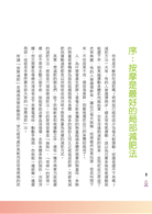 其實,想減肥的朋友們,除了控制飲食和做運動之外,還有一種不用費力就能瘦的減肥方法,那就是穴道按摩減肥法。它的原理就像是「抽脂」、「埋線」的原理一樣,卻不需你去動刀做手術,就能幫助改善血液循環,去除身體多餘的脂肪、消除浮腫。你只需要在每晚洗澡或者坐下來看電視時,動動手指頭,你就能一邊娛樂一邊瘦局部。這就是本書所要告訴大家的「按摩減肥」法。