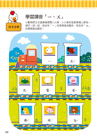 循序漸進由淺入深,透過遊戲、貼紙的設計,從遊戲中帶領孩子快樂學習,提高吸收力。