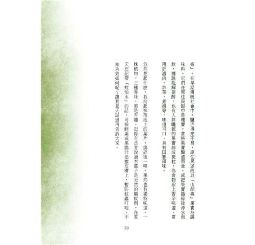忽然想起什麼,我拾起掉落地上的葉片,搗碎後一嗅,果然也有獨特味道,一株植物,三種香味,煞是有趣。記得有長者說過木薑子是天然的驅蚊劑,在夏天忘記帶「蚊怕水」的話,可採鮮葉或果搗汁塗擦皮膚上,暫防蚊蟲叮咬,不知功效如何呢?讓我夏天試過再告訴大家。