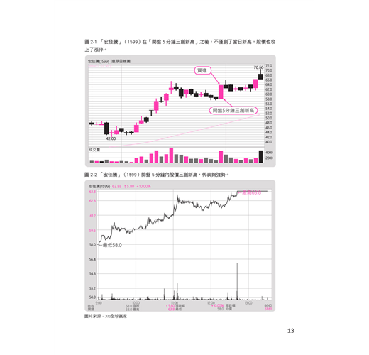 一位高手朋友略讀了本書的初稿,覺得應該比較像抓「起漲點」的股票。其實這是一種誤解。筆者出身新聞界,早年拜100餘位基金經理人為師,學的多半是基本面的功夫,可是近十年來隱居他鄉,「閉關十年磨一劍」,自己每天花10個小時研究的則是技術面和籌碼面。本書的招式,完全得力於技術面和籌碼面。這是短線能夠快速成功的主因。當我要講述一檔股票時,第一件事就是先把日線圖拿出來,正如我們看人總是先看臉,才有一個概念。股價的位置和趨勢,關係操盤的績效,我們在抓一檔股票的漲、跌停板,也應認清相關位置和趨勢,比較容易逮獲。至於其後的發展是否如預期的上揚或下跌,日線圖也提供追蹤的佐證。所以,粗略一看,會誤以為這是在抓起漲點。