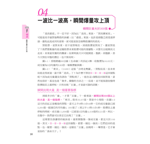 股票爆巨量是一個重要的指標,但是何謂巨量?對股本30億以下的公司來說,瞬間300張算不算巨量?短線熱門股一定要有「人氣」,但什麼代表股市中的人氣?本書作者全書以明確的文字,說明細微的觀察。
