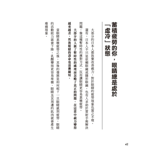 不過,請放心。以下我要介紹的「視力訓練」,能夠確實地消除眼睛的虛冷,這麼一來你的擔心也會獲得解決。