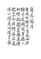 自反錄第二集,乃彙集蔣公自民國十五年至民國二十年之文電函札講演詞等擇要編次而成,由陳屺懷先生編輯。其目錄次序略經 蔣公閱定,然內容尚未遑親為校雠也。恐日久散佚,爰命先印若干部,存備觀覽。至若搜羅補充,斟酌去取,則當俟諸他日焉。刊印既竣,為誌其略如此。-陳布雷謹識