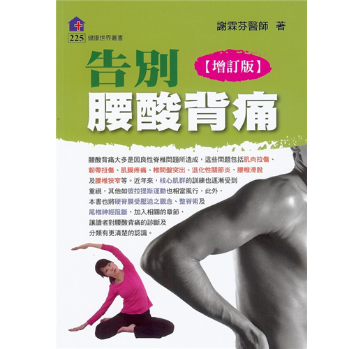 其他如比拉提斯運動也相當風行,此外,本書也將硬脊膜獸壓迫之觀念、整脊術,及尾椎神經阻斷,加入相關章節,讓讀者對腰酸背痛的診斷及分類有更清楚的認識。