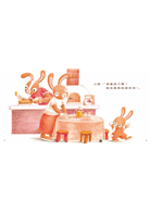兔爸爸、兔媽媽:「歡迎大家來為小兔慶生。」