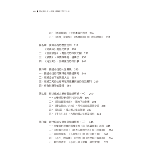 本書所描述與論析的,是1978年以來的大陸文學,也就是中國大陸的後毛澤東時代的文學,在中國現當代文學的歷史分期裡通常被稱為「新時期文學」。「新時期文學」是從去除毛的文學為政治服務的主張而起步的,經過「文學回到自身」的努力,終於成為具有一定獨立性的精神創造領地。在這個領地裡,每一個拿筆寫作的人都可以是無冕之王,能夠照著自己的理解去書寫歷史,描繪人生。在歷史被塗飾,人生被扭曲的社會裡,他們的書寫與描繪,為一個民族和它的文化保持了尊嚴,毋庸置疑,只有在文學書寫裡,被二十紀一度盛行的歷史主義所顛倒了的歷史與人生的關係才顛倒了過來,文學家所持的個體與生命本位的文學觀才是兩岸精神聯繫的結實紐帶,也是中國文學與世界文學相通的有力憑據。「新時期文學」主要是以二十世紀的民族生活史與心靈史為書寫和表現對象的,內容駁雜而豐富,形成巨大的體量,是現代中國社會變遷的人性化記錄,對於因歷史原因而生疏於大陸社會的臺灣讀者來說具有別樣的認識價值,而由一路跟進新時期文學的大陸學者將研討所得公之於同好,或許能起到一點導讀的作用。