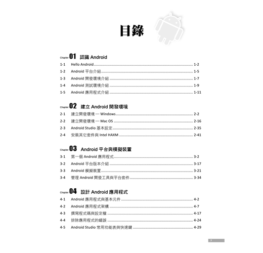 這一章說明下載、安裝與設定Android應用程式開發與測試環境的作法,因為開發人員經常在Windows與Mac OS開發Android應用程式,所以會分別說明這兩種作業系統的安裝與設定方式。