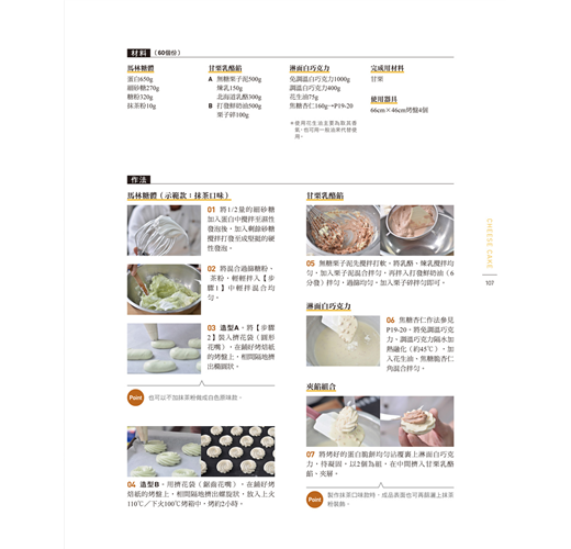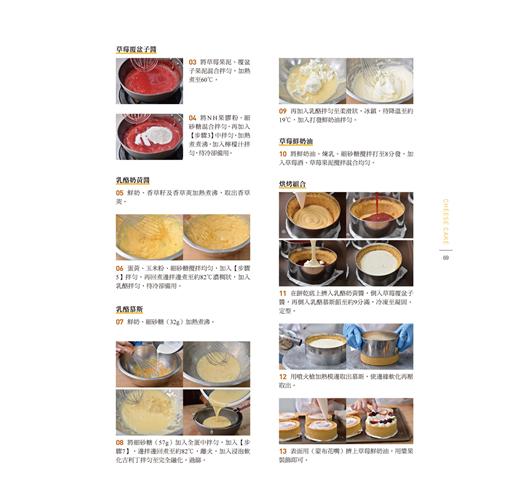 ◎專業祕訣的技巧傳授:基本發泡打法、烤焙法、脫模、分切,就不同類型教您實用的技巧。