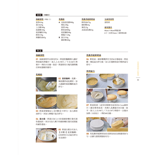 ◎完整講解所有基礎功:從材料、器具、模型分類說明,到各式底層質地、基本製作技法,全方位傳授,是學習乳酪甜點的必備工具書。