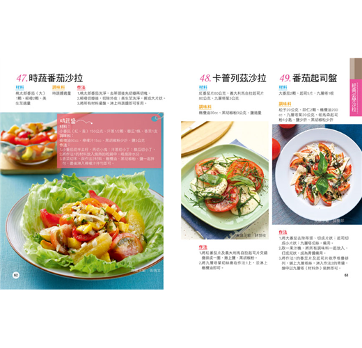 在家自己做沙拉,除了較衛生安心之外,也能隨著喜好調整不同的食材比例,或是選擇各種不同風味的沙拉醬,搭配出自己最喜愛的沙拉風味。本書除了要教讀者們最經典受歡迎的人氣沙拉作法之外,還有時下最熱門的罐沙拉以及各式美味的沙拉醬作法,讓讀著們可以自行做搭配。吃膩大魚大肉了嗎?那就試著做些清爽無負擔的輕食沙拉吧!