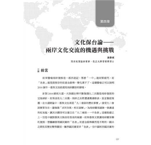 第四章 文化保台論—兩岸文化交流的機遇與挑戰
