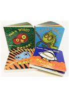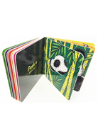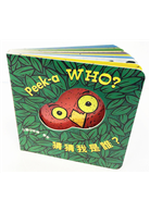 這類型的猜猜遊戲紙板書非常吸引學齡前的孩子,左邊的頁面寫著「猜猜我是誰?」,右邊的軋型洞孔可以看到下一頁動物或物品局部圖案,一翻頁答案就揭曉了。是一隻貓頭鷹、一隻黑白相間的母牛,和大象、長頸鹿、斑馬等動物都擠在一起的動物園。最後有鏡面設計,翻到最後一頁寶寶會看見自己!明亮色彩、精美設計,是寶寶們不可或缺的視覺盛宴。