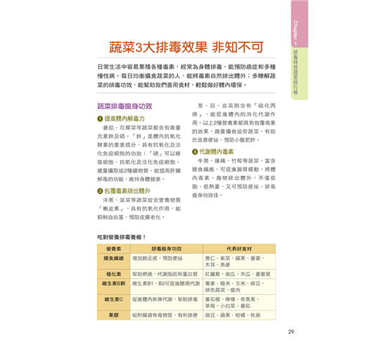 此外,蔬菜亦富含礦物質與維生素,有助排出體內的過剩營養和水分,並改善排便習慣,消除各種脹氣與虛胖症狀。