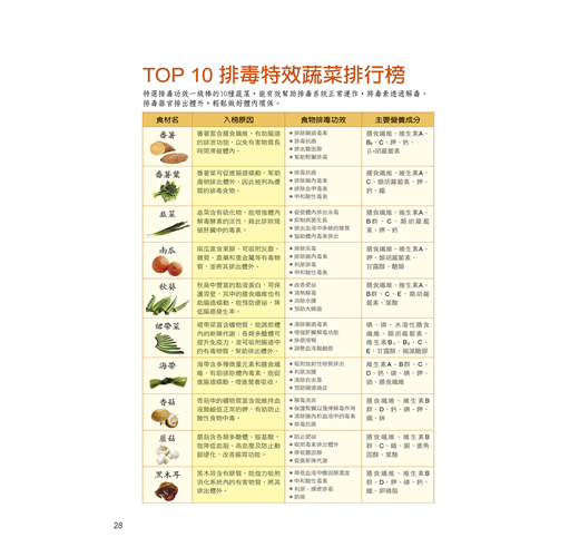 食材名 入榜原因 食物排毒功效 主要營養成分
