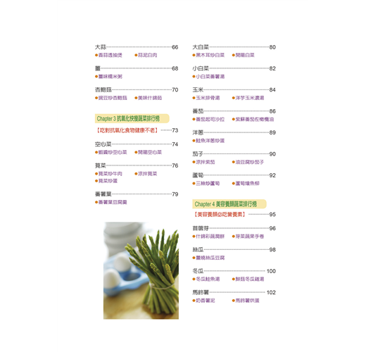 精選美白、抗痘、瘦身熱門話題,從生活中拾手可得的平價蔬菜,攝取豐富多元植化素、關鍵養分,輕鬆掌握美的祕密,維持窈窕好身材!