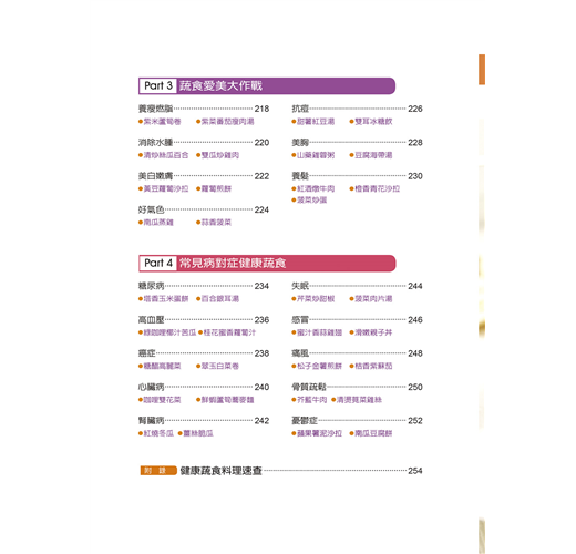 254 【附錄2】常見病對症蔬療功效VS.養生食譜索引