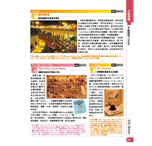 4.完整的城市導覽:包括分區速寫、如何前往的交通資訊、本區風華、賞玩吃買住,必看景點、必賞美景、必吃美食一點不漏。