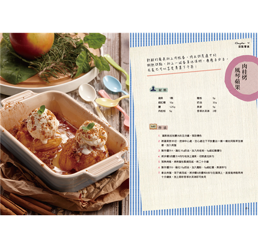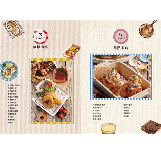 硬著頭皮挑戰下去後,竟也創造了一道道豐盛料理,有些則是簡化但同樣美味更為便捷的版本。除了中、西、日式美食、甜品,跟一些亞洲料理外,這次也大膽改良了幾個西式的經典料理,像是法式紙包魚、義式烘蛋、北非蛋……讓小烤箱更能豐富運用。在這本書完成後,一開始不熟悉小烤箱的我們,竟也都變成小烤箱的愛用者。