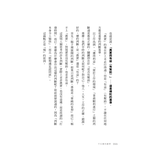 那麼,我們平時的判斷又如何呢?對自己、他人、人生,工作的正確、錯誤,好的、壞的判斷,是「真實」還是「有益」的?