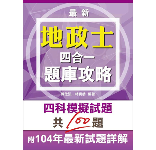 《地政士四合一題庫攻略》於書末收錄最新試題,完整試題詳解,有如名師親臨指導解惑,考前衝刺最佳利器,快速熟悉考試題型與出題方向,掌握得分關鍵!