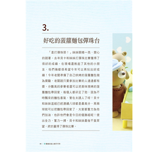 延續說故事的方式進入手做的世界,搭配有趣的故事場景,跟著故事裡的主角貝卡,一起去探索童玩世界。它是個黏土作品,也是個可以激發腦力,訓練手眼協調的玩具遊戲,更是親子共樂增進彼此感情的橋樑。跟著書一步步,您會發現原來用黏土做玩具,可以這麼簡單又上手。現在就和我一起進入有趣的黏土童玩世界吧!