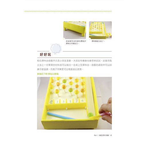 這些有趣的童玩勾勒出一幅幅令人回味的記憶圖像,小女孩們愛玩的娃娃換裝遊戲、小男生玩著小汽車、辦家家酒、市場裡的彈珠台、套圈圈、釣魚遊戲……。發現輕黏土因其重量輕加上容易塑形的特性,很適合做童玩。像是竹蜻蜓、波浪鼓、手指偶等,再搭配一些生活中隨手可得的素材,好玩的自製童玩就產生了。童玩是陪伴許多人...