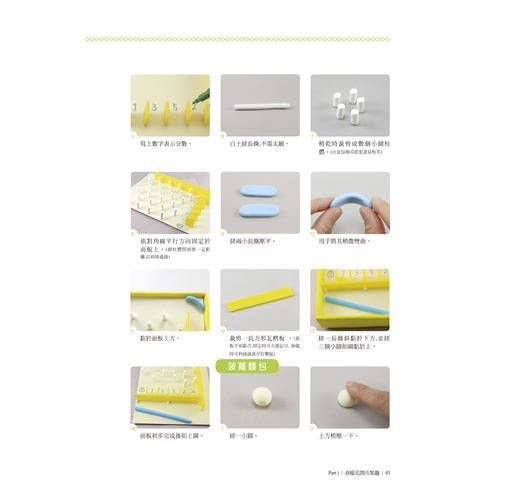 6.材料工具可於書店或網路黏土材料店購得。家中有不用的紙盒或舊飾品等等,也可再改造變化。坊間有些生活用品店,有時也可找到物美價廉又實用的素材喔!