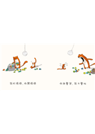 看黃鼬爸爸好累好累,小黃鼬卻還精神抖擻的在爸爸身上翻跟斗,爸爸疲憊到下垂的眼袋;或是爸爸忙著收拾小黃鼬散落一地的積木,小黃鼬很閒的在一旁繼續亂玩,結果爸爸忍不住大吼,小黃鼬哇哇大哭的模樣,所有的爸爸媽媽一定都會忍不住猛點頭又搖頭,深知箇中滋味的會心...