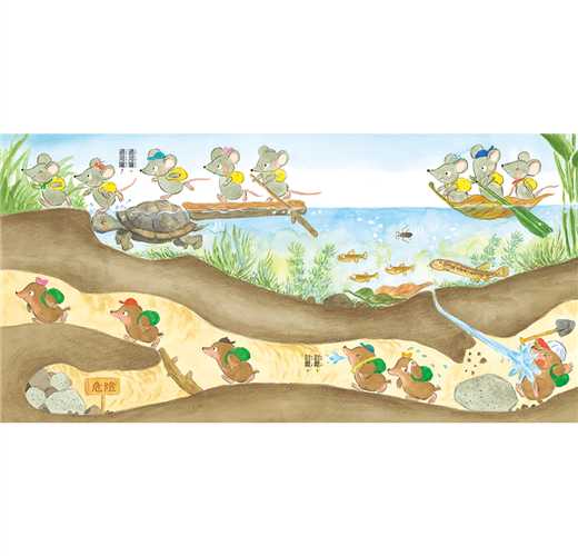 出發去遠足囉!老鼠走地上,鼴鼠走地下,上下對照的兩條故事線,圖畫中有好多豐富的細節!