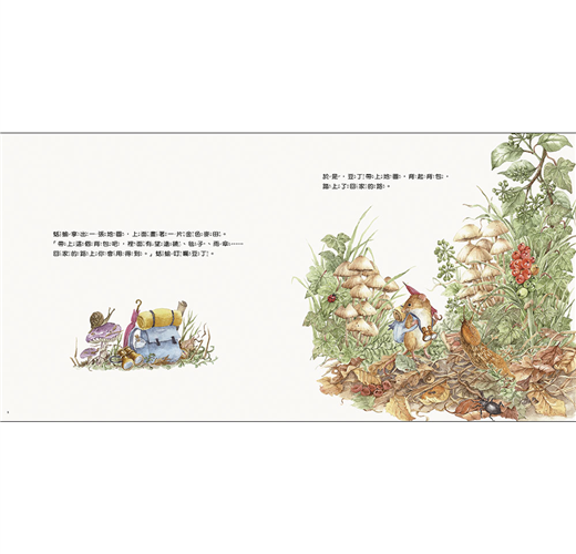 隨著對圖畫書認識度的提高,越來越多的畫家開始補強這一領域。《豆丁要回家》這本書正是其中鮮明的代表。它讓我想起了「彼得兔」時代的繪畫風格,也讓我想起南宋那些優雅的畫家—折一枝一果或是匍匐於花草前悉心描摹,樂在微妙而廣大的世界中,並賦予每一個動物和植物生氣盎然的個性和意味。