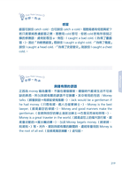 蚊蟲/乾洗、洗衣/洗衣SOS求助句 【購物】在商店內/存放過久/保存期限/服飾賣場/顏色/設計/樣式/尺寸/價格/昂貴的/殺價/產地/買衣服SOS求助句/禮物/折扣/特價 【結帳】付錢/找錢/信用卡/塑膠袋/打包/其他好用句/網上訂購 【放假日】電視/有趣的/廣告/有趣的節目/無聊的/錄影/電玩/聽音樂/拍照/看DVD/演員/故事、劇情/歌曲/閱讀 One Point Lesson: 「硬著頭皮」的英文怎麼說? One Point Lesson: Pupil與Student One Point Lesson: 「名片」和「名牌」的說法 One Point Lesson: 啃老族