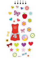 3.從貼紙頁上選擇不同的物品來裝扮娃娃。貼紙頁上有成品,也有需要塗色的半成品。你也可以直接用樣版在衣服上畫出自己想要的圖案。