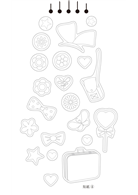 樣版上的鏤空圖案有衣服,也有小飾物和花紋。使用樣版時,請從書中取下,覆蓋在娃娃身上相對應的位置,用筆沿著圖案輪廓邊描繪即可。