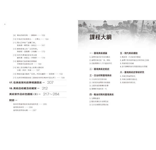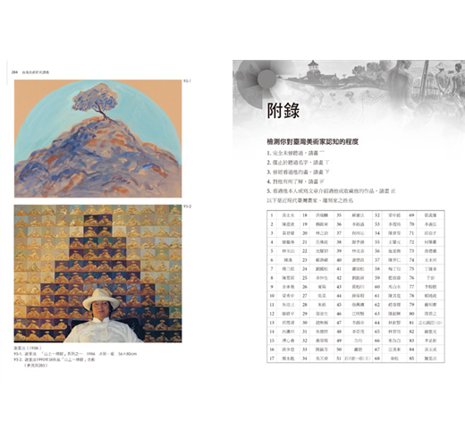 本書亦製作了圖版、內文藝術家姓名關鍵字索引,使讀者在閱讀時能直接將「圖」、「文」輕易連結、吸收且流暢。本書透過作者謝里法親身的美術經歷和其一貫幽默的敘事風格,將他於師大美術研究所的課堂講義加以融合、整析,其中更為了彰顯與讀者間的互動性,於最終章提出「臺灣美術問卷」,使讀者在閱讀時,彷彿如坐在課堂上與作者面對面討論一般生動。