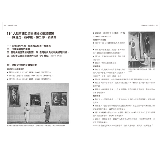 美術史,顧名思義是記錄美術作品、藝術風格和藝術家等和美術相關的發展歷史。臺灣當然也有屬於自己的美術史,大多是從日治時期開始說起,著重在對臺展、府展、省展等得獎大師的研究,是以藝術家風格為主要枝幹支撐的美術史研究,與法國美術史側重於詮釋藝術思潮之演變的研究方法截然不同。如此一來,臺灣的美術研究受限於前輩大師們的權威,或出於對他們的尊敬因而難以有突破性的歷史思維。