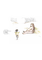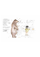 這書的每一張插圖都是以咖啡色系為主,再少少搭配些許其他顏色,以及單純的背景,色彩雖少,卻張張引人注目,讓孩子在聆聽故事的同時,能夠把所有的注意力全都放在小男孩和大熊這兩個主角的故事發展上。