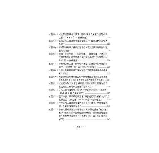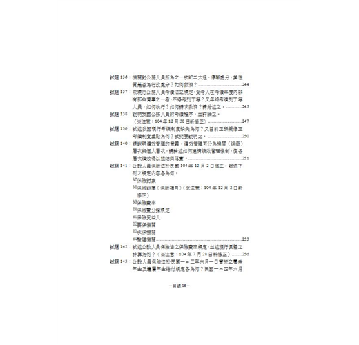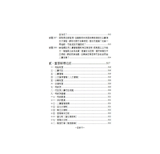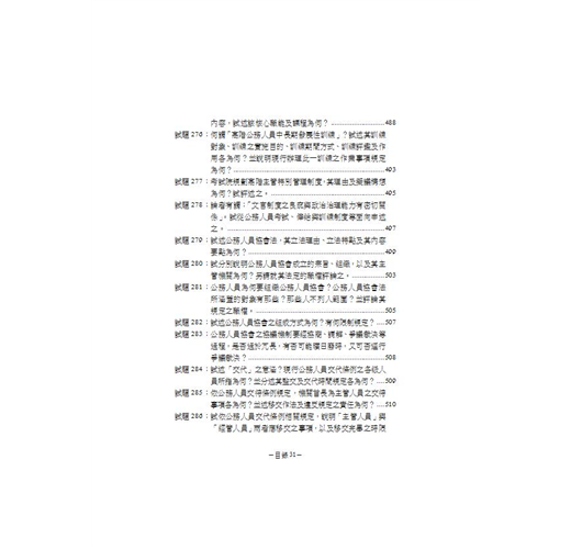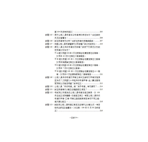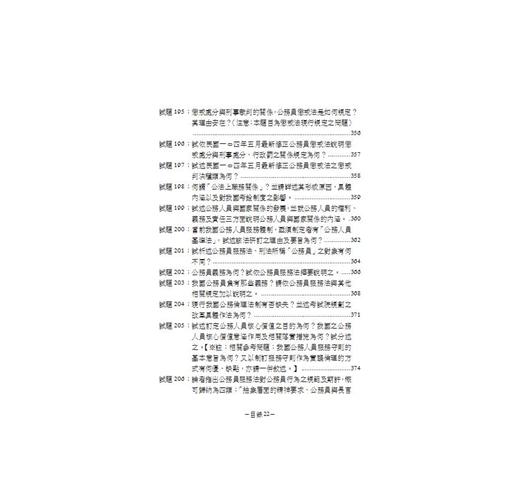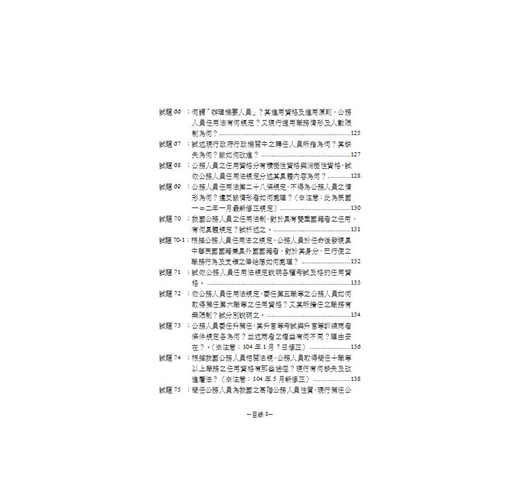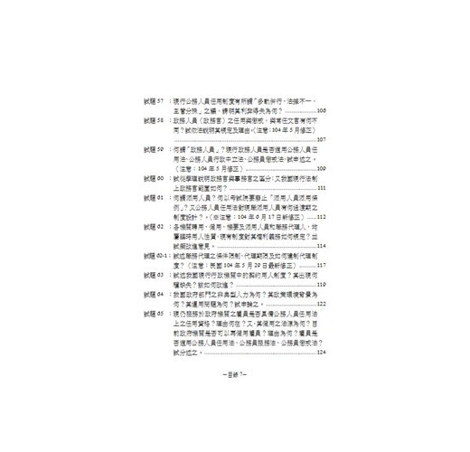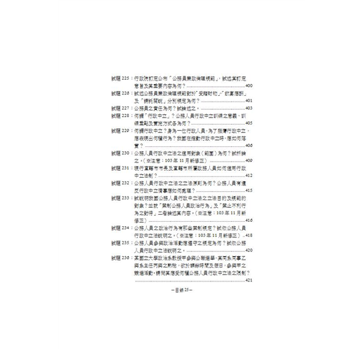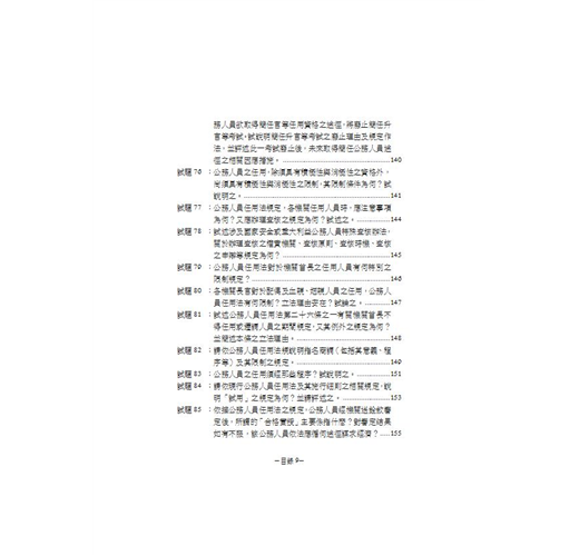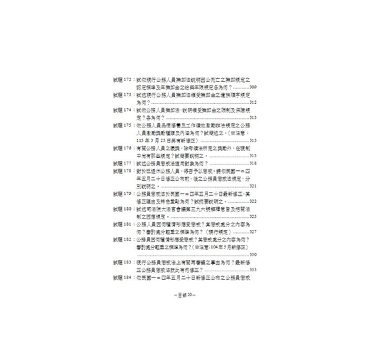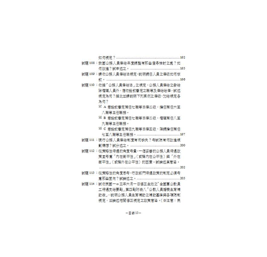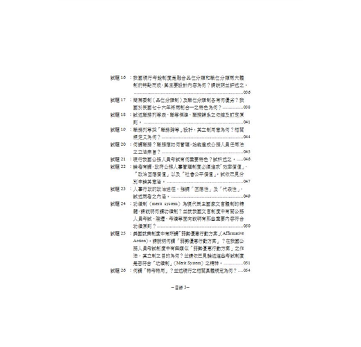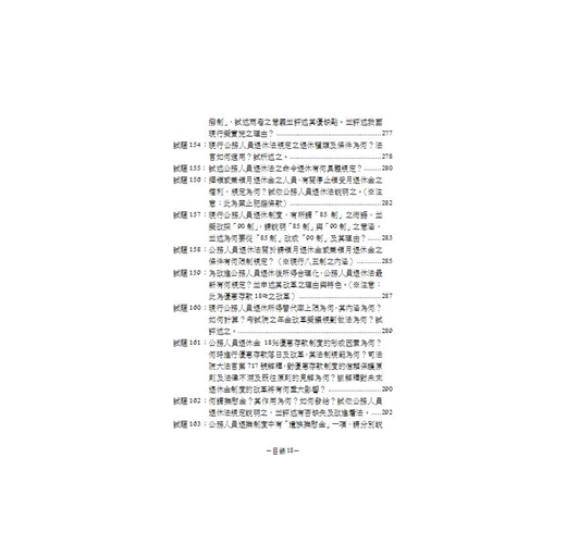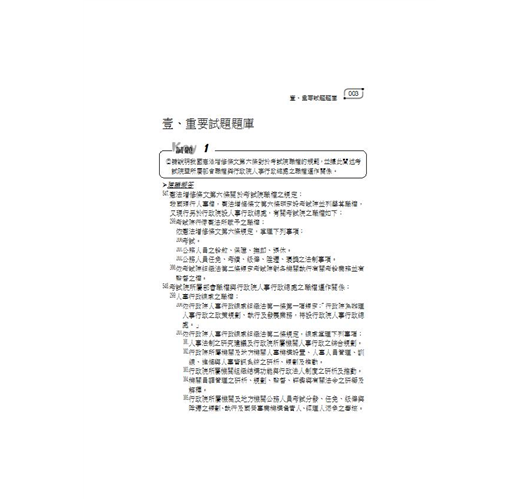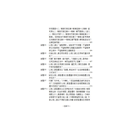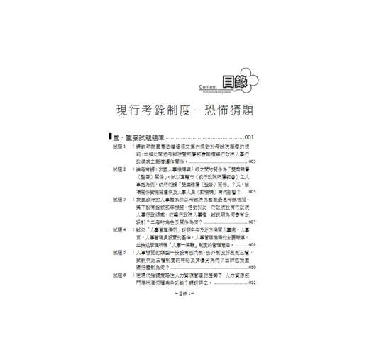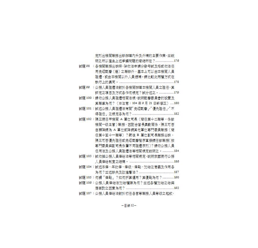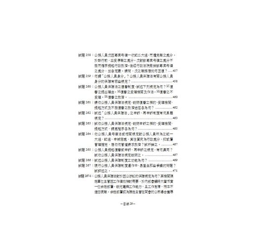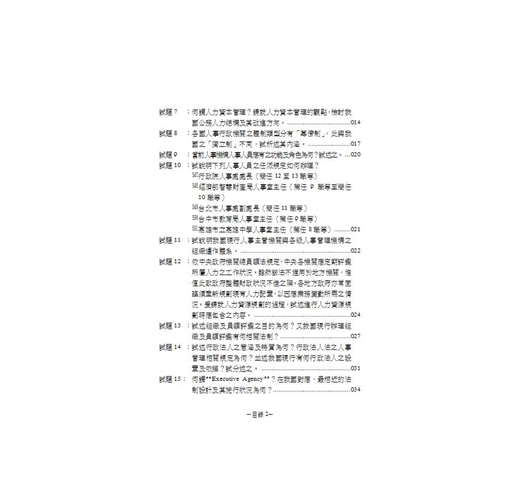 收錄近年相關之現行考銓制度試題與建議擬答參照表。
