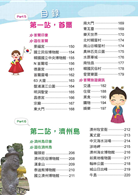 3吃:介紹韓國各種類型的餐廳,並附有各種餐廳的圖片。此外,還詳細說明在餐廳該注意的禮儀,如何閱讀菜單與點餐,讀者可以根據這些資訊,輕鬆吃遍韓國美食。