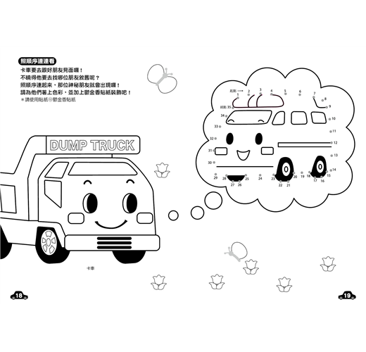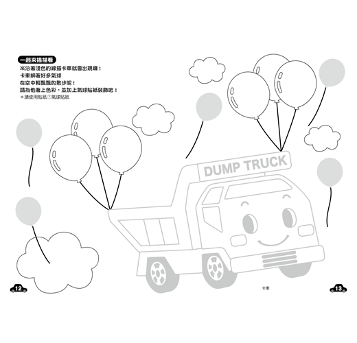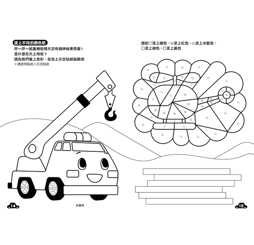 ◎ 5種遊戲方式:貼貼紙、動手著色、連連看、沿著線描描看、跟著圖案上色!