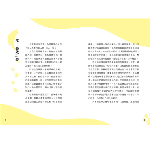 近年來有越來越多都市人加入貓奴的行列,我想,很多人的原因可能跟當初的我一樣吧,覺得貓咪又萌又好照顧。恩哼,伺候貓主子哪有那麼容易!!作為一個有責任感的貓奴,請務必要購買本書,因為本書就是貓主子的伺候寶典。在此與各位分享,若不是因為本書,本奴不會發現,原來本奴過去習以為常的伺候貓娘娘的經驗,是從小訓練狗兒子的那一套(淚奔)……