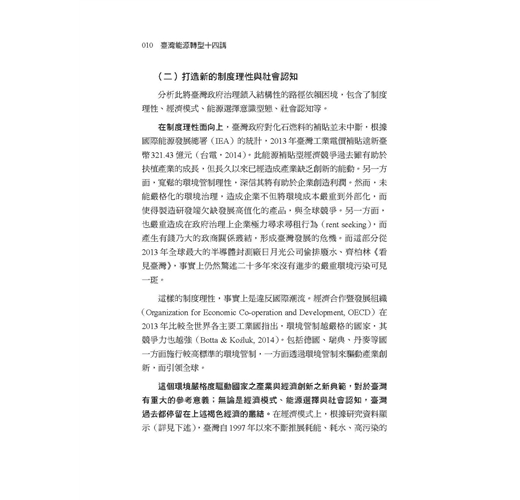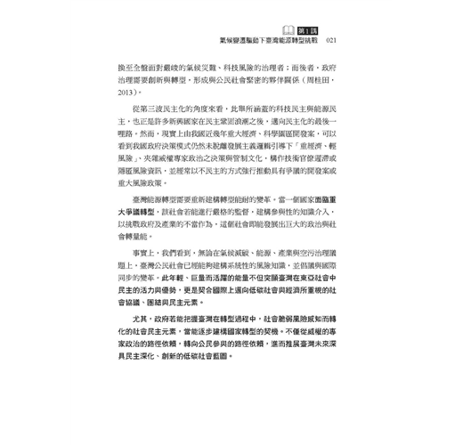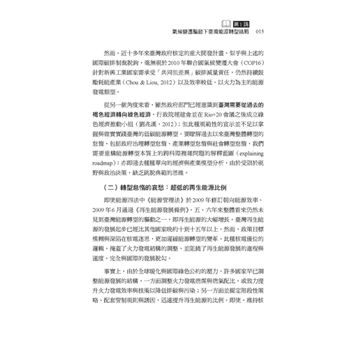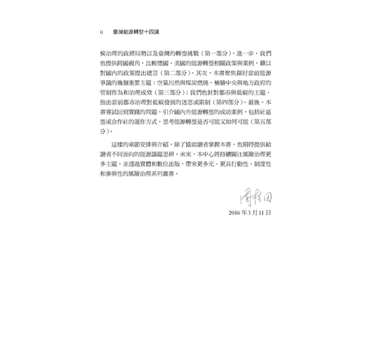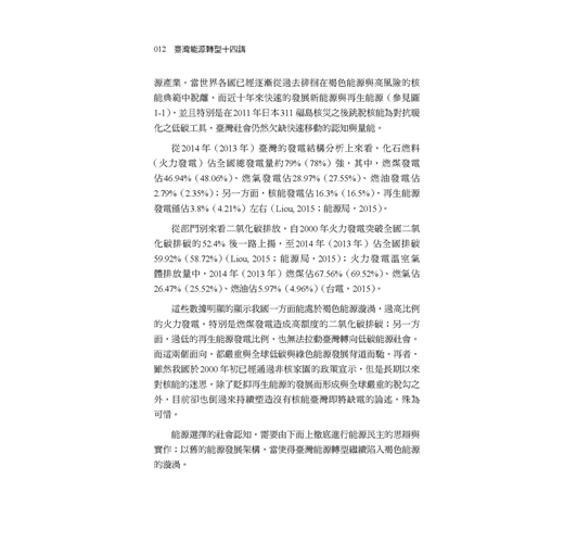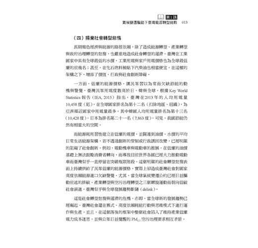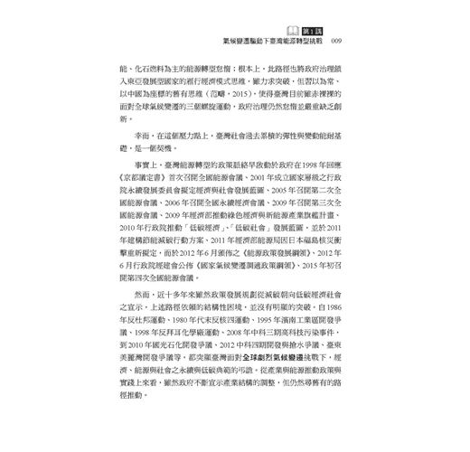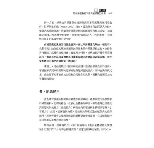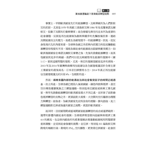 這幾年有越來越多民眾關心公共事務,勇於發表意見。但往往因為資訊不足、或先入為主的選擇立場,以至於流于意氣之爭。因此在因應氣候變遷、能源轉型的重要時刻,我們特別需要持平討論公共事務的平台,更需要精闢紮實的研究做為討論基礎。這本書的價值正在於此!