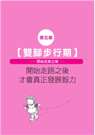 嬰兒出生後大概八個月到一年三個月會站起來走路,每個人狀況不一,差別在於天生的遺傳及後天的訓練。本書將這段時間內的身體與大腦發育狀況分為五個階段: